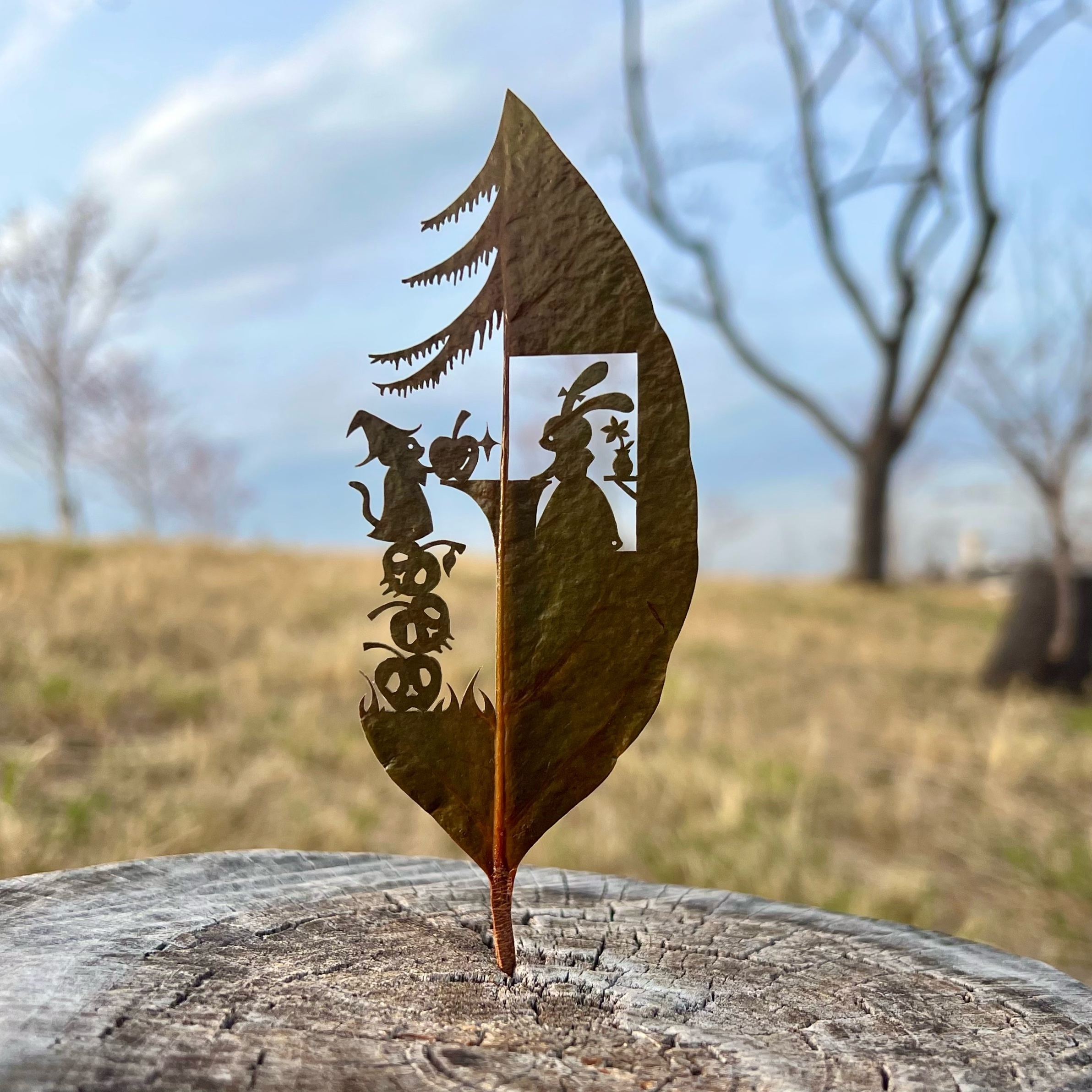 長野県で初展示される作品を中心に、本物の葉っぱ一枚から切り出される繊細で物語性のある作品等を展示します。
